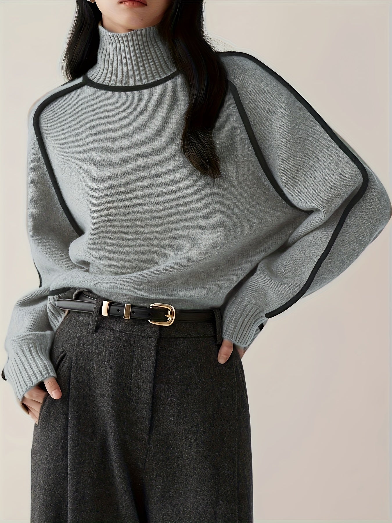 - Elegant Design: The Emily Turtleneck features a timeless silhouette with a modern twist, highlighted by the contrasting piping that adds a sophisticated edge to your look.